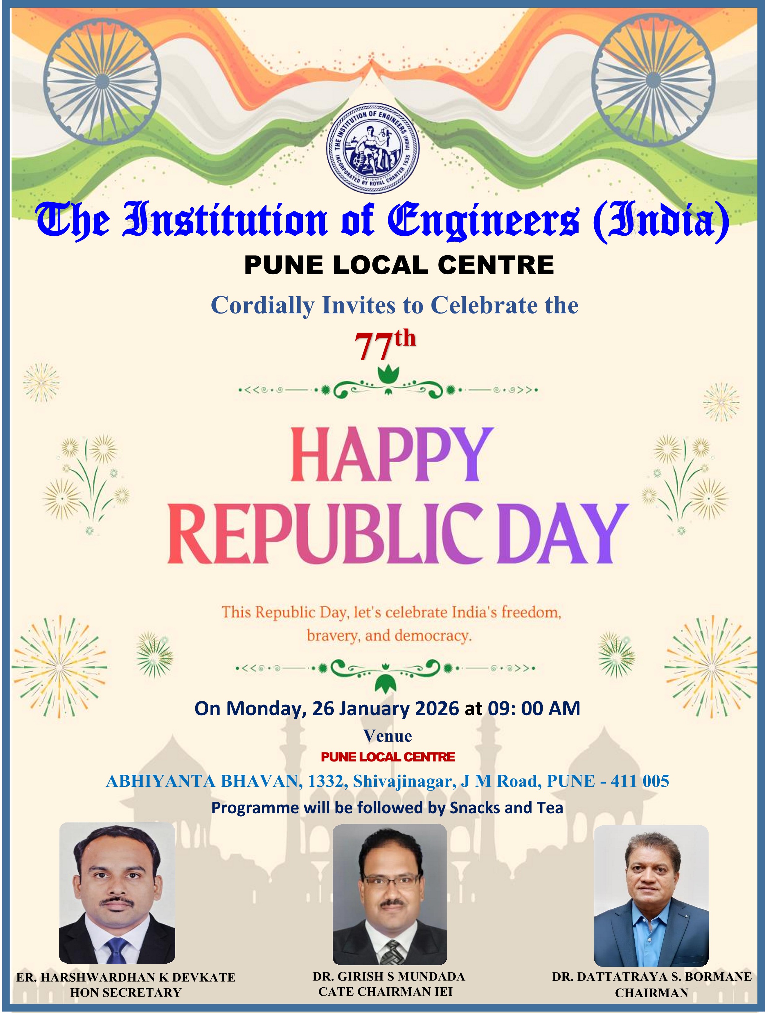 The Institution of Engineers (India) Pune Local Centre,Cordially Invites to Celebrate the 77th Republic Day Flag